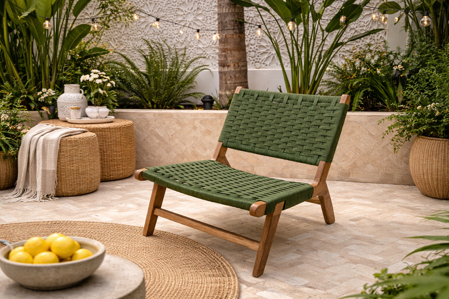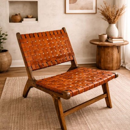 Moroccan Armchair in Nutwood with Cord – Handwoven Reclined Chair