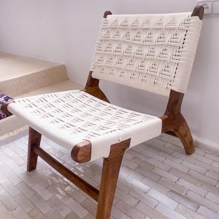 Moroccan Armchair in Nutwood with White Cord – Handwoven Reclined Chair