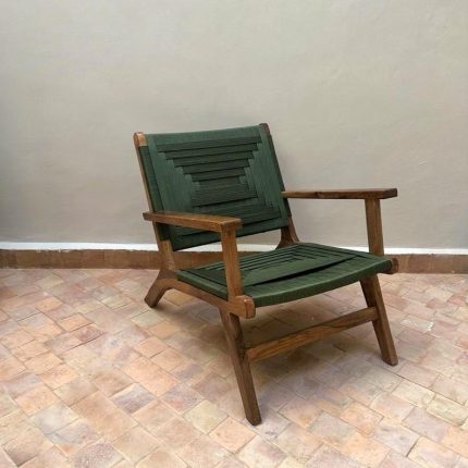 Moroccan Armchair in Nutwood with Green Cord – Handwoven Reclined Chair