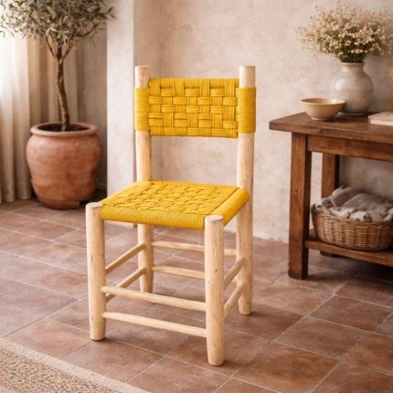 Moroccan Wooden Chair with Green Rope Seat – Handmade