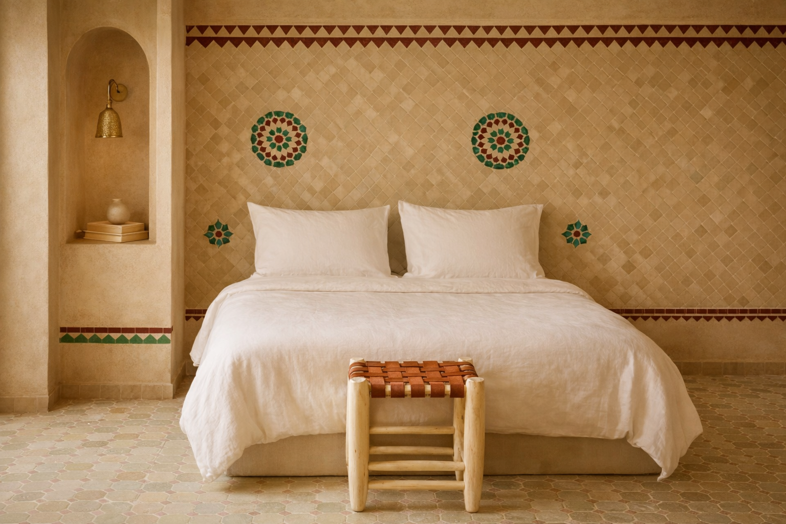 Moroccan Boho Bar Stool with Natural Leather – Handmade