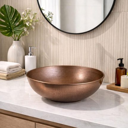 Hammered Copper Round Vessel Sink – Rustic Bathroom Bowl