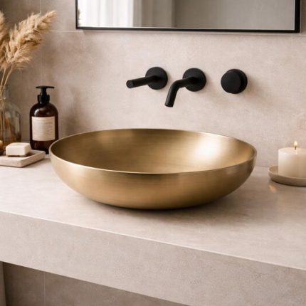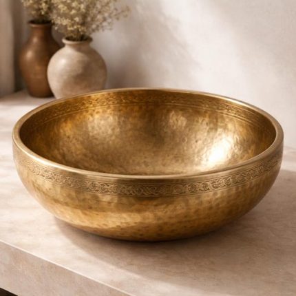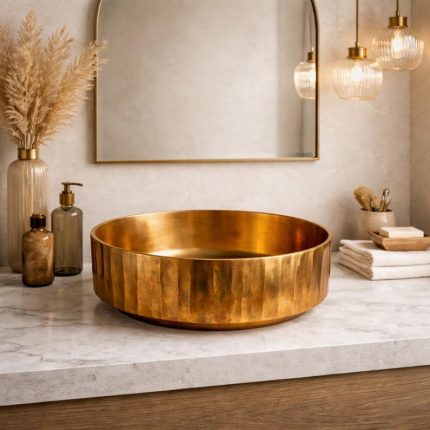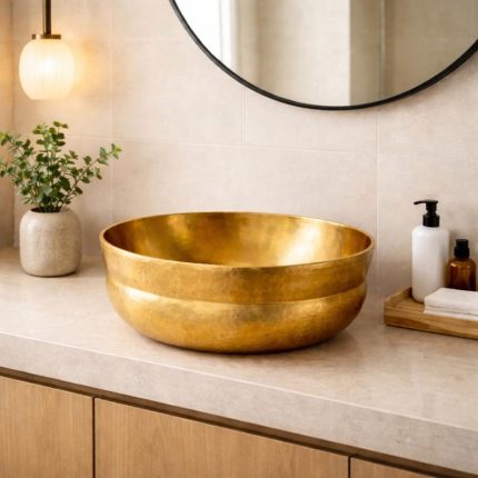 Hammered Copper Round Vessel Sink – Antique Gold Finish