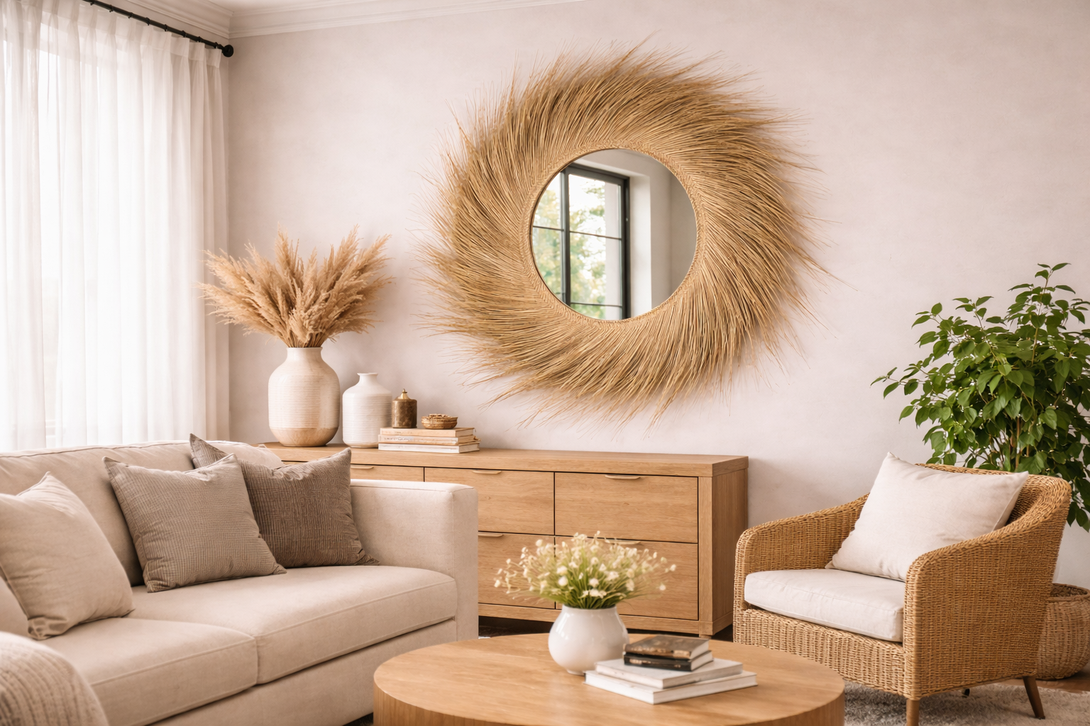 Moroccan Raffia Mirror – Round Handwoven Wall Mirror