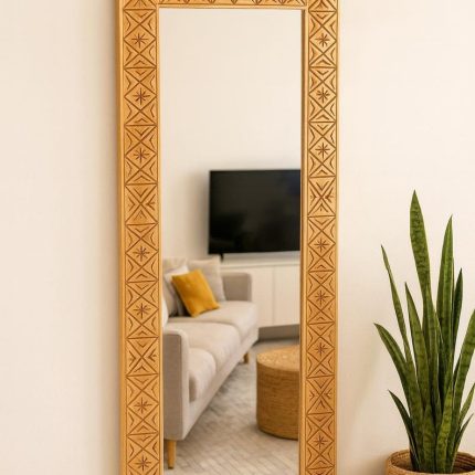 Handmade Rectangular Wooden Mirror – Natural Wood Frame