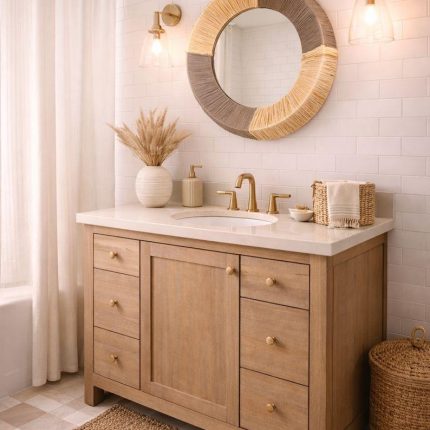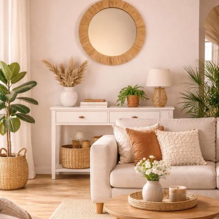 Moroccan Raffia Cord Mirror – Round Handwoven Wall Mirror