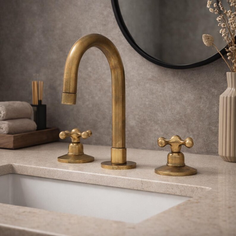 Bring classic elegance to your vanity with this antique brass widespread bathroom faucet. Featuring a tall curved spout and two cross-handle controls, this 3-hole set delivers a timeless vintage look with a warm aged brass finish that suits modern classic, farmhouse, and traditional bathrooms.