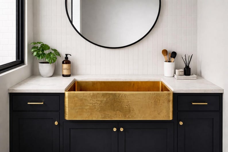 Hammered Brass Apron Front Sink – Gold Farmhouse Basin
