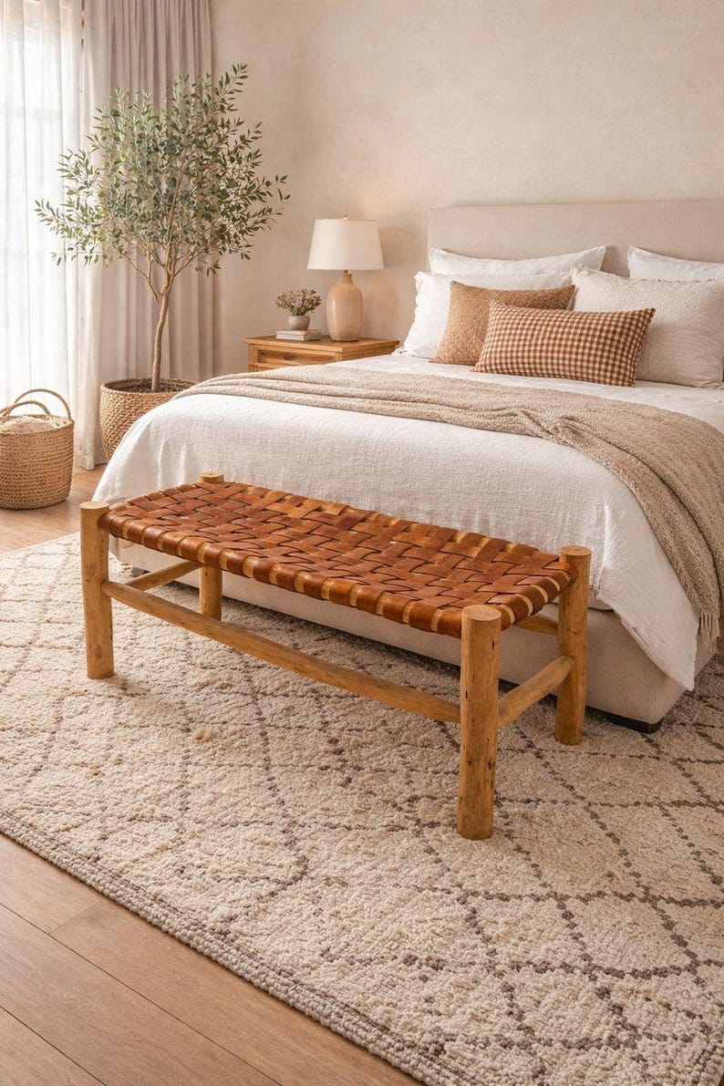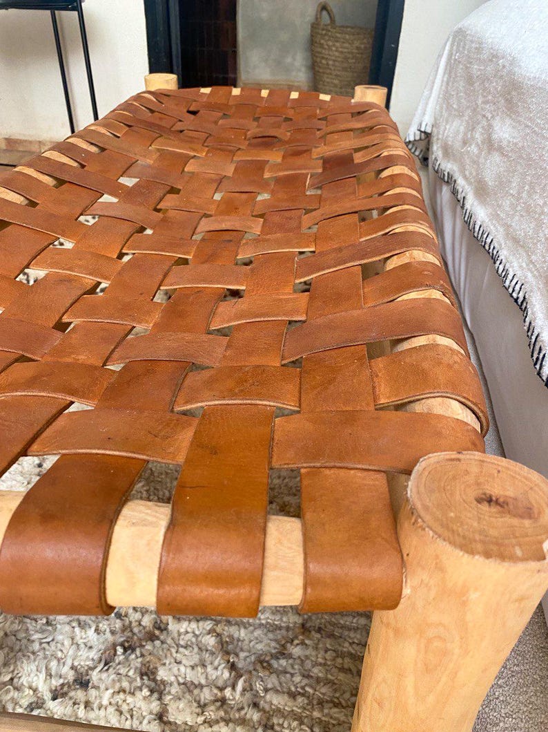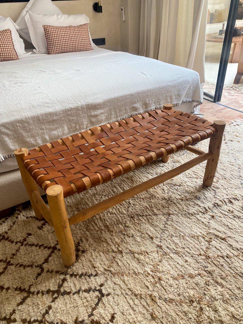 Breng verfijnd Marokkaans vakmanschap in huis met deze prachtig geweven bank, ontworpen om functionaliteit te combineren met tijdloze bohemian charme. Dankzij de ambachtelijke afwerking is dit een veelzijdig meubelstuk dat elke ruimte verrijkt — gebruik het in de hal voor dagelijks gemak, in de woonkamer als accentzitplaats, of aan het voeteneinde van het bed voor een elegante finishing touch.