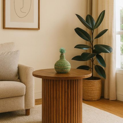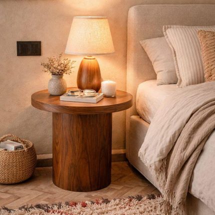 Ronde Bijzettafel van Walnotenhout