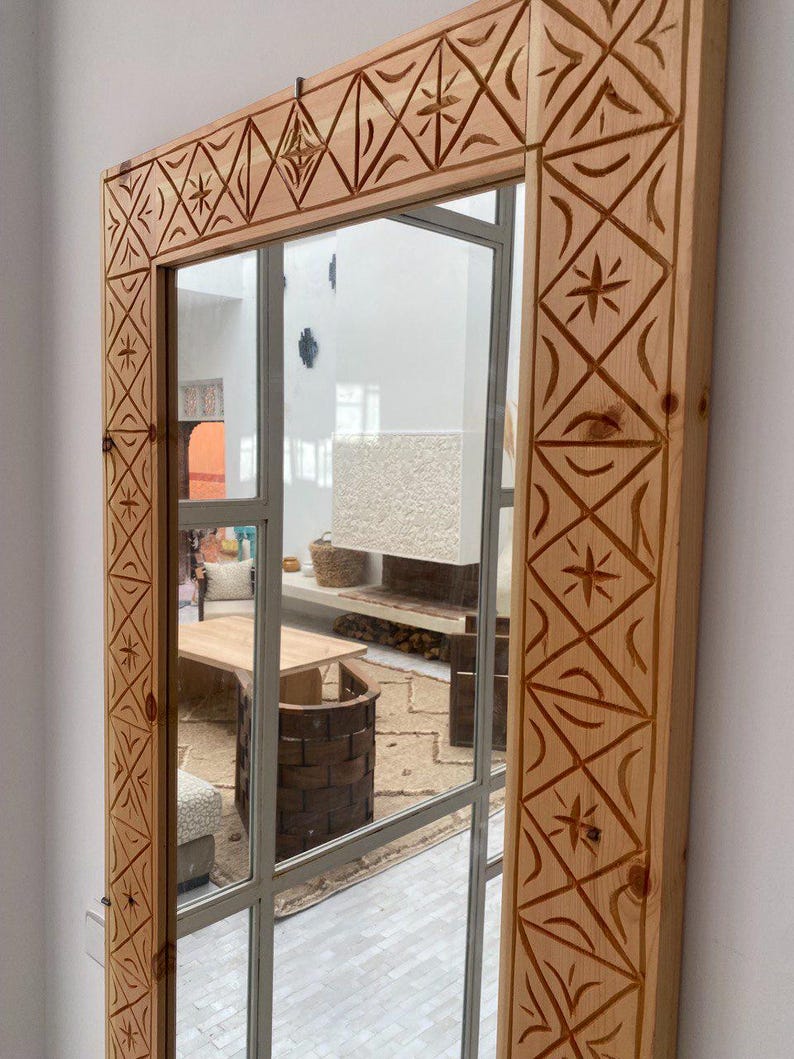 Each mirror is unique, with natural variations in wood grain and tone.