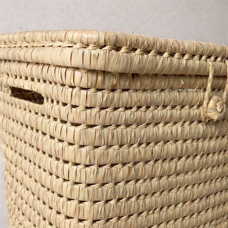 Both decorative and functional, this handwoven storage basket is a must-have for any home. Designed to keep everyday clutter neatly out of sight, it works perfectly as a laundry basket and adds a boho-chic natural touch to your bathroom or laundry room. Made from palm leaf, it features two sturdy side handles for easy carrying and a matching lid for a tidy, clean look.