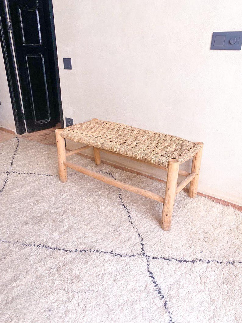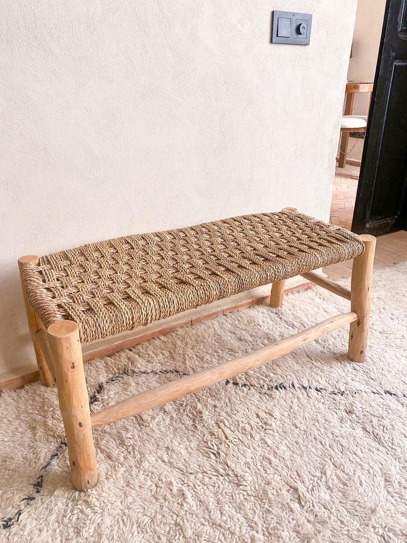 Marokkaanse handgeweven bank met palmbladkoord