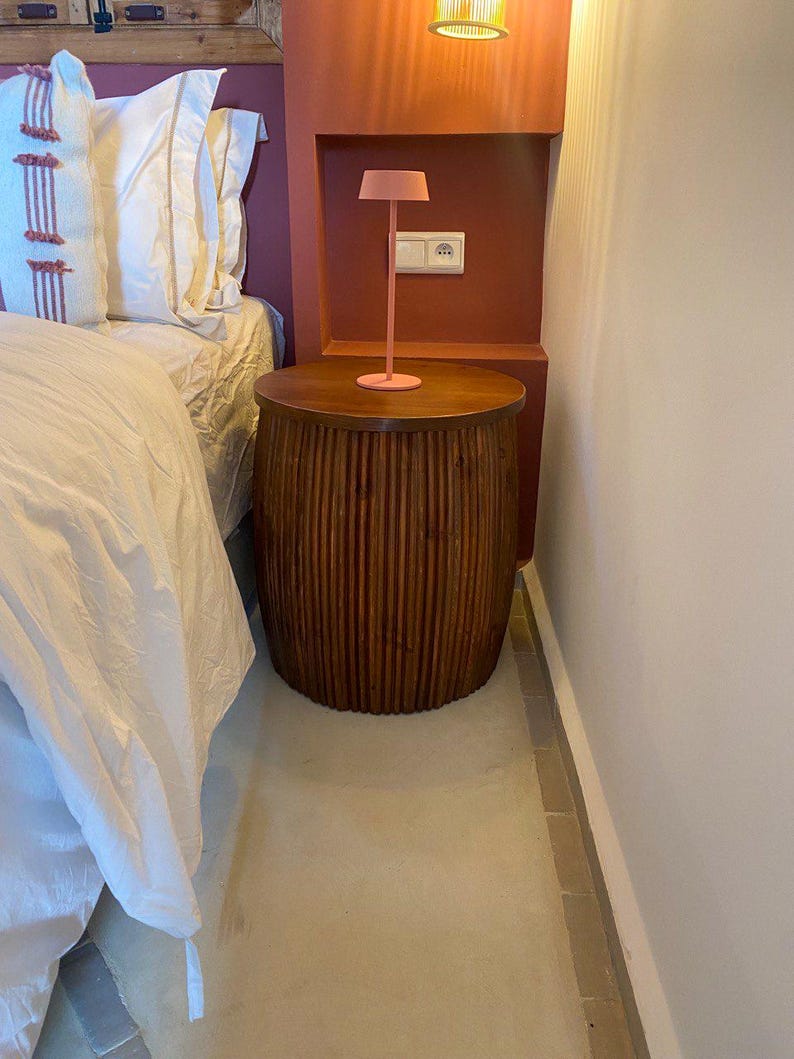 Elk stuk wordt zorgvuldig met de hand gemaakt, wat resulteert in subtiele variaties in houtnerf en kleur. Deze maken elk nachtkastje uniek en authentiek.