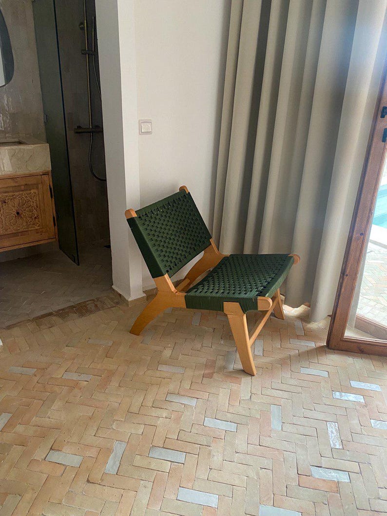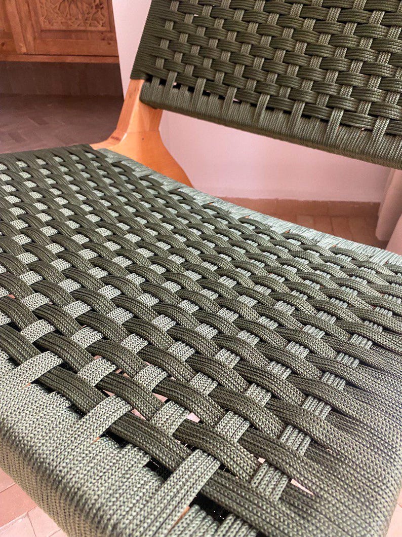 Sillón marroquí de nogal con cuerda verde – silla reclinable tejida a mano