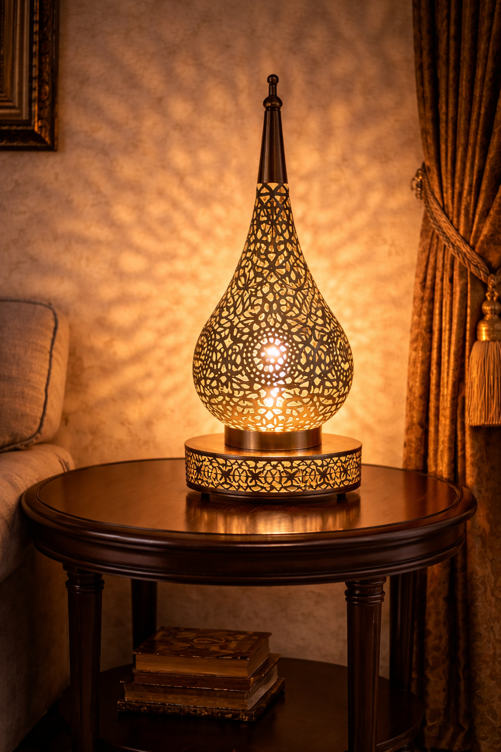 Perfect for side tables, consoles, or bedside styling, this lamp brings a subtle luxury and authentic Moroccan character to living rooms, bedrooms, or intimate corners.