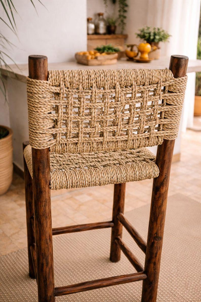 Moroccan Handwoven Bar Stool with Palm Leaf Rope – Handmade