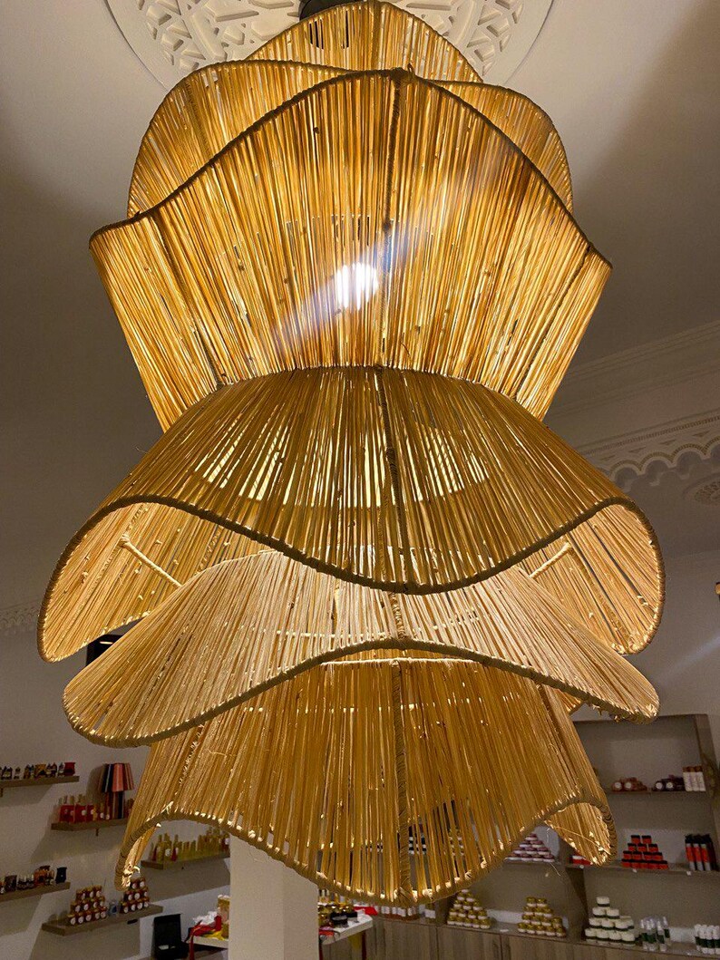 Handcrafted Raffia Pendant Light – Moroccan Parasol Lampshade