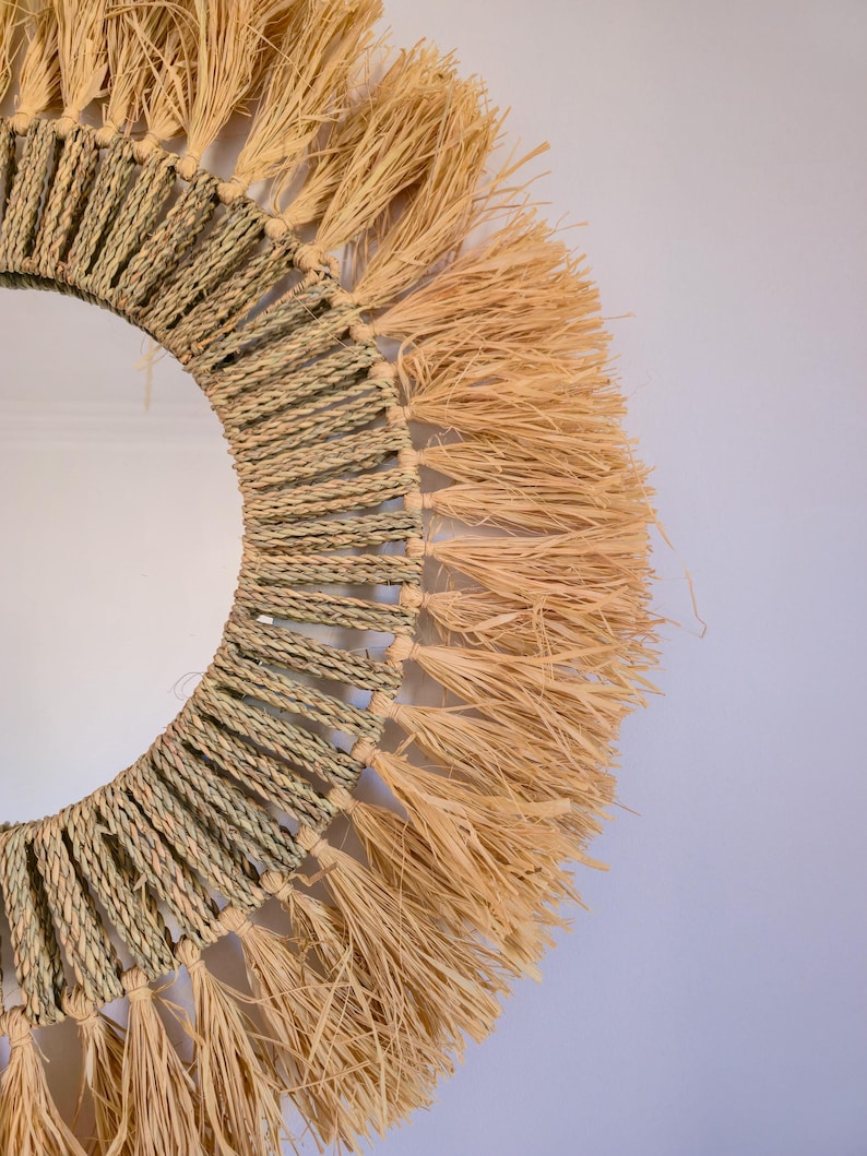 Moroccan Raffia Mirror – Round Handwoven Wall Mirror