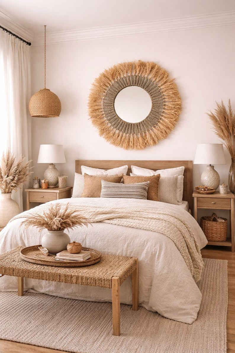 Perfect for use in living rooms, bedrooms, hallways, or bathrooms, this mirror adds depth and natural character to both modern and bohemian-inspired spaces.
