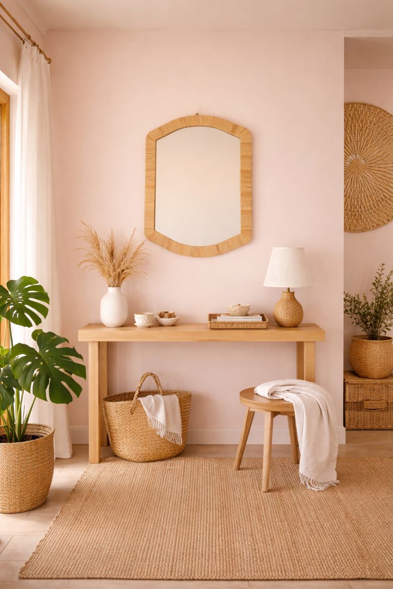 The rectangular shape allows for vertical or horizontal placement, making it ideal for living rooms, bedrooms, hallways, or bathrooms. The organic materials complement boho, coastal, rustic, and minimalist interiors.