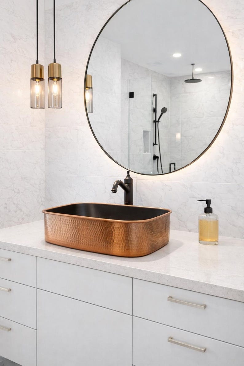 Antique Copper Round Vessel Sink – Rustic Patina Bathroom Bowl