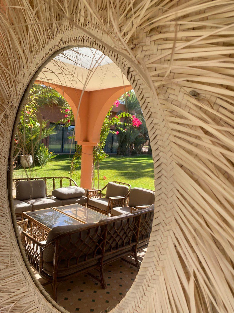 Round Moroccan Straw Mirror – Handwoven Paille Wall Mirror