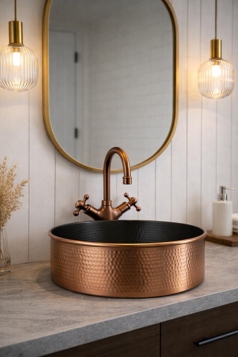 Hammered Copper Round Vessel Sink – Rustic Bathroom Bowl