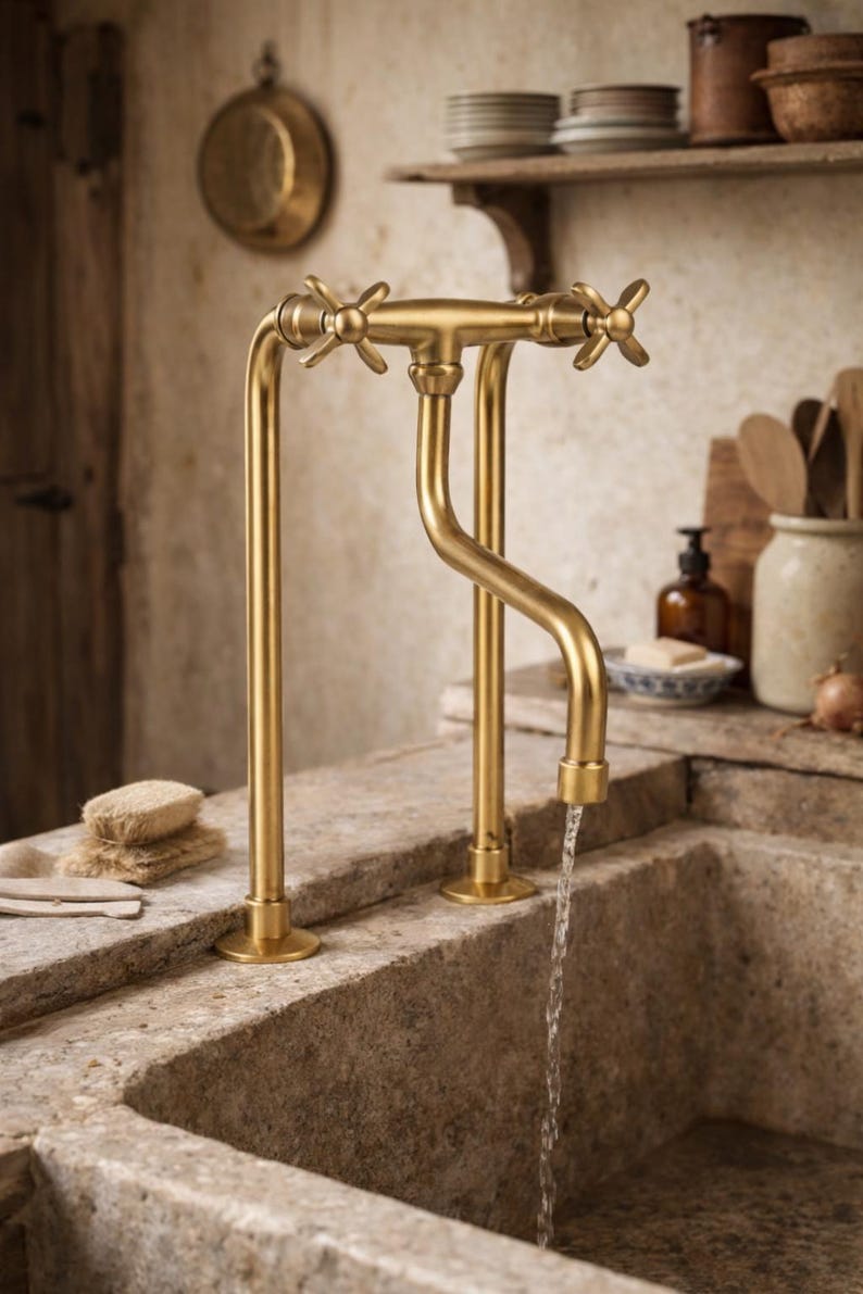 Unlacquered Brass Kitchen Faucet – Handmade Moroccan Bridge Faucet with Long Legs
